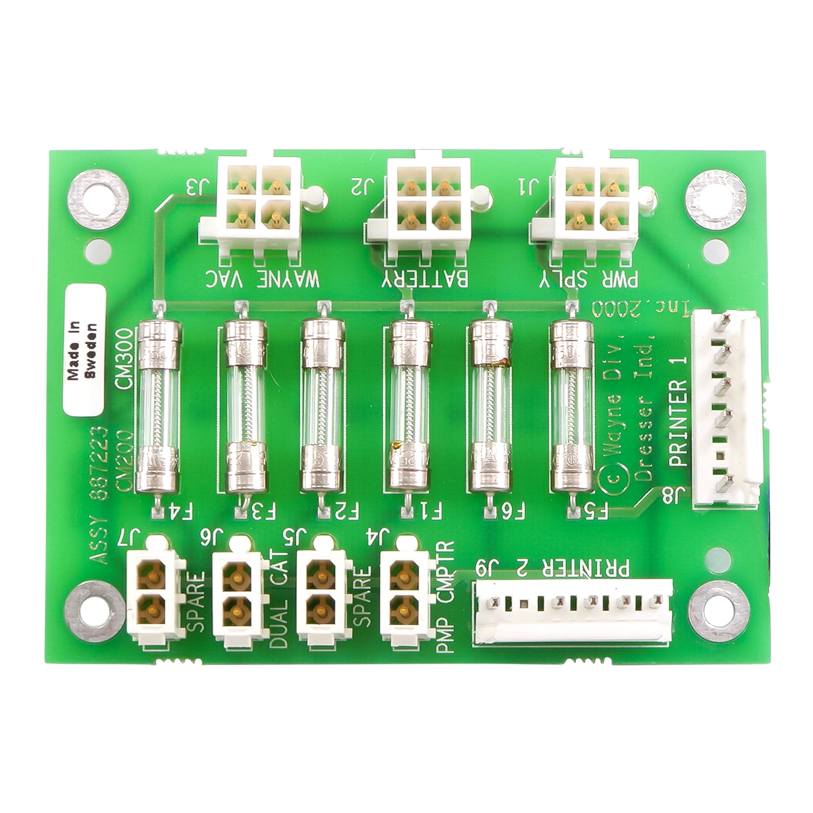This Freedom Remanufactured IGEM Power Distribution Board (SKU 887223-001) is designed to manage 24 VDC power flow within Wayne dispenser systems. A direct replacement for OEM parts 887223-001, 887223-R01, and 709-0390, it provides reliable voltage distribution and circuit protection across Ovation, Ovation 2, and 3/Vista models.