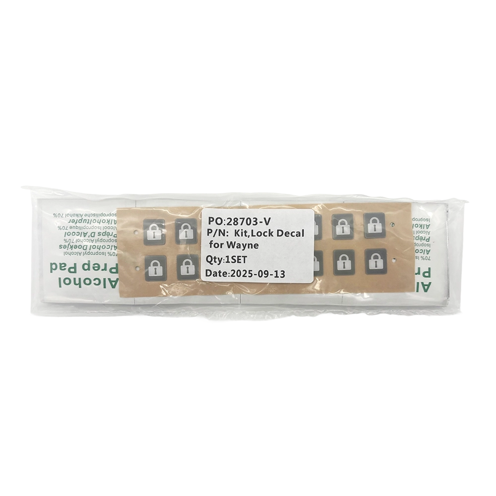 The Lock Decal Kit (part number WU018697-0001-Kit) is a Freedom Engineered set of 16 replacement labels for use on Wayne Ovation dispensers. These decals are designed to clearly mark lock points, improving visibility, security, and compliance with standard service protocols. This kit is a direct replacement for WU018697-0001-Kit.